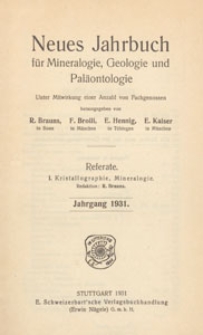 | Neues Jahrbuch für Mineralogie, Geologie und Paläontologie. Referate. 1, Kristallographie, Mineralogie, 1931, Inhalt | 29 lip 2021 |