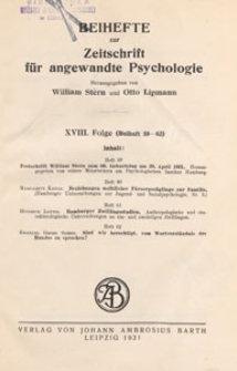 Stern, William (1871-1938). Red. ; Lipmann, Otto (1880-1933). Red.