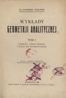 | Żorawski, Kazimierz (1866-1953), 1930, Wykłady geometrii analitycznej. Tom I : Punkty, linie proste i koła na płaszczyźnie. | Sep 11, 2013 |