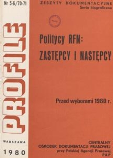| Politycy RFN : zastępcy i następcy : przed wyborami 1980 r. : [redagował zespół: Kazimierz Biernat et al.] | Aug 11, 2022 |
