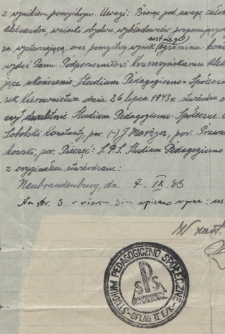 Title: Odpis protokołu egzaminu końcowego Studium Pedagogiczno-Społeczego w Oflag II E/K Neubrandenburg