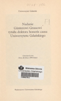 | Nadanie Günterowi Grassowi tytułu doktora honoris causa Uniwersytetu Gdańskiego : Gdańsk-Oliwa, dnia 26 maja 1993 roku | Jul 25, 2019 |