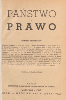 Title: Państwo i Prawo : organ Zrzeszenia Prawników Demokratów w Polsce, 1947.09 nr 9