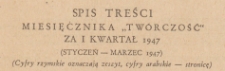 Title: Twórczość : miesięcznik literacko-krytyczny, 1947, spis treści za I kwartał